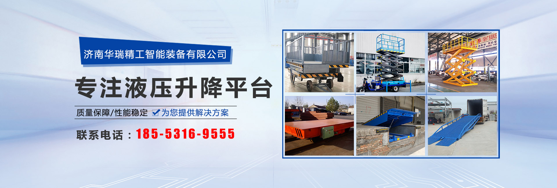 濟南華瑞精工智能裝備有限公司是專業生產系列液壓升降平臺的專業企業,是液壓升降平臺專業定點生產廠家之一,本廠生產設備精良,檢測手段齊全,技術力量雄厚,產品有六大系列五十多個品種,各項性能和技術指標均達到國家行業標準,隨著多年改革開放的步伐,公司得到了快速發展,現已成為國內主要的液壓升降臺生產企業。我們公司堅信,只有不斷的創新,才能持續的發展。 創立至今,公司始終以液壓升降臺為專業產品,經過長期的研究和探索,積累了豐富的升降臺制造經驗,致力于產品的開發、創新,以自身專業特長,創造高品質的產品。我廠長期致力于液壓升降平臺的研制和開發,不斷的改進和創新企業的產品。現有六大系列五十多個品種,年年有新產品問世,主要產品有移動剪叉式液壓升降機;導...